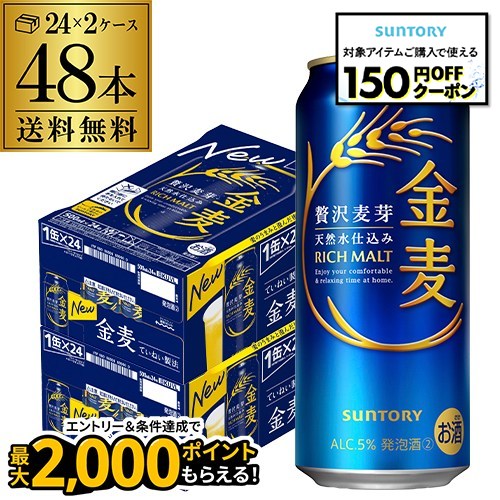 本州/東北/四国/九州は送料無料【11/25限定 全品P3倍】送料無料 サントリー 金麦 500ml×48本(24本×2) 新ジャンル 第3の生 ビールテイスト 500缶 国産 2ケース販売 ロング缶 長S